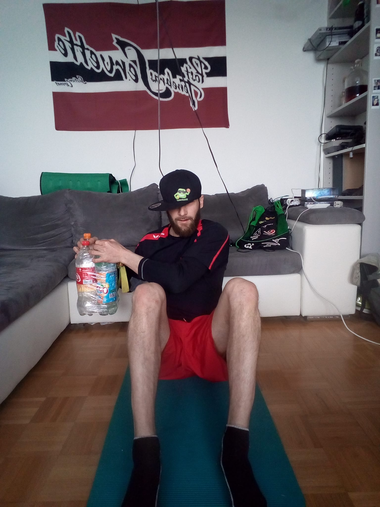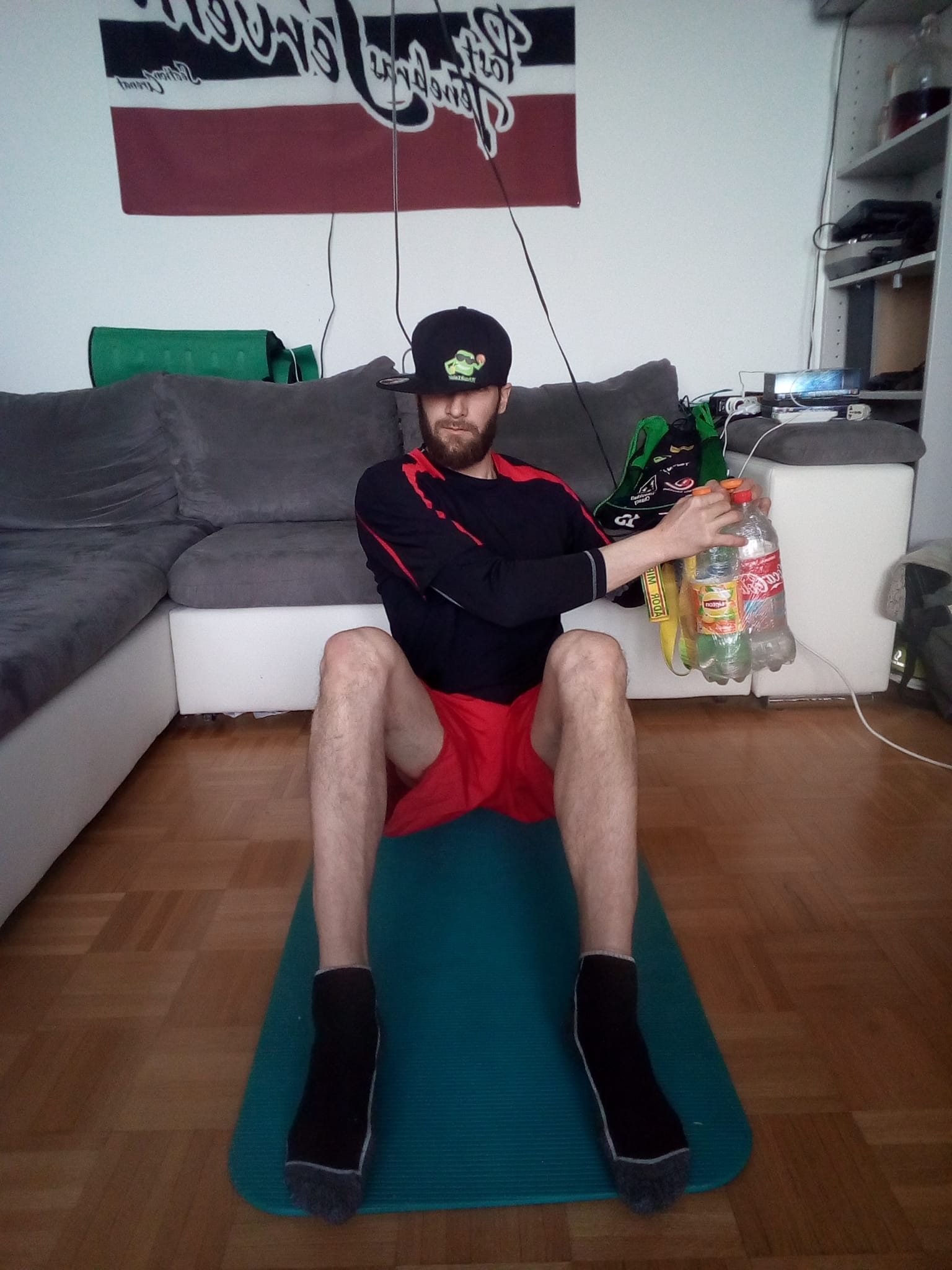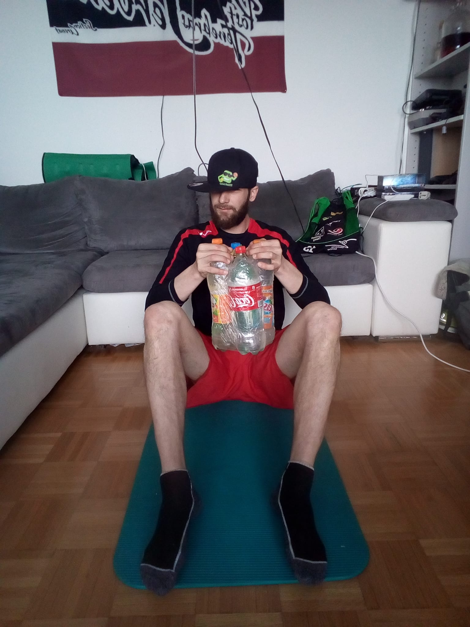 On s’assied au sol, les pieds sont fixes et le bassin aussi. On prend une charge à sa droite et on l’emmène à sa gauche, la charge ne fait effleurer le sol de chaque coté.