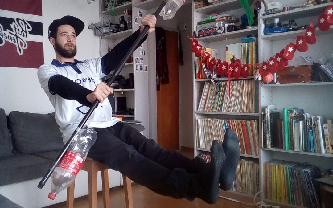 But: Renforcement musculaire haut du corps, travail des muscles stabilisateur du tronc Matériel: Un manche à balais, du scotch, des bouteilles PET Remplir les bouteilles au 2/3 et les scotchés au manche à balais comme ci-dessous. S’asseoir sur un tabouret ou...