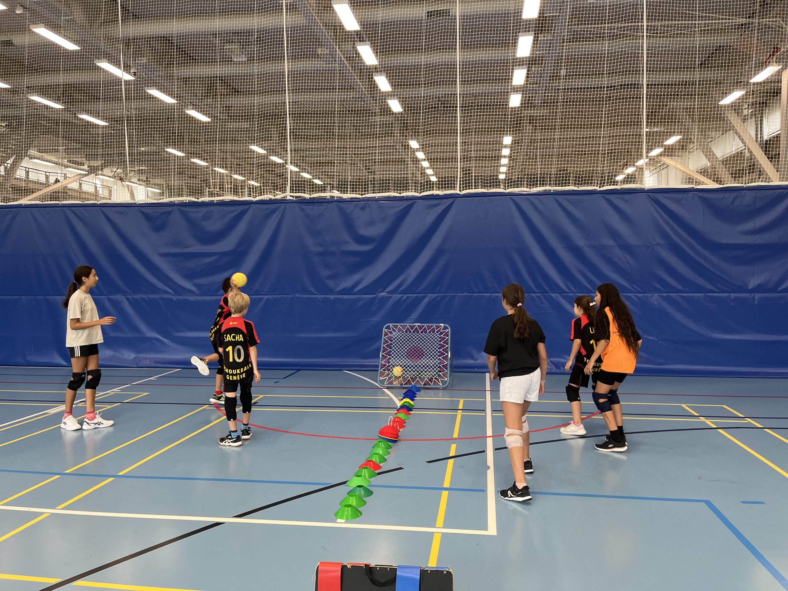 La matinée se déroule en salle de sport avec des activités liées au tchoukball et
