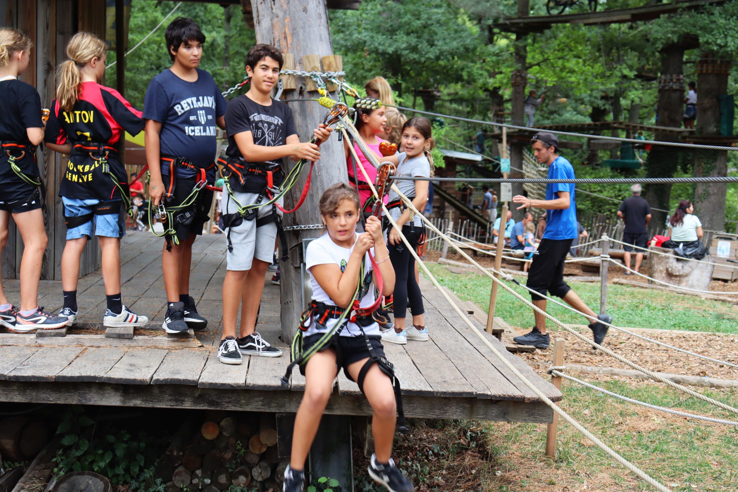 L’après-midi, en dehors de la salle de sport, les enfants ont bien profité de la piscine des Vernets ainsi que celle de Varambé, ils ont pu faire une descente sur l’Arve sur les bateaux du rafting et ils ont pu grimper dans les arbres à l’Accrobranche aux parc des Evaux, ils sont aussi allés au centre sportif du Bois-des-Frères pour faire du beach volley, du basketball, du badminton ou encore un loup-garou.