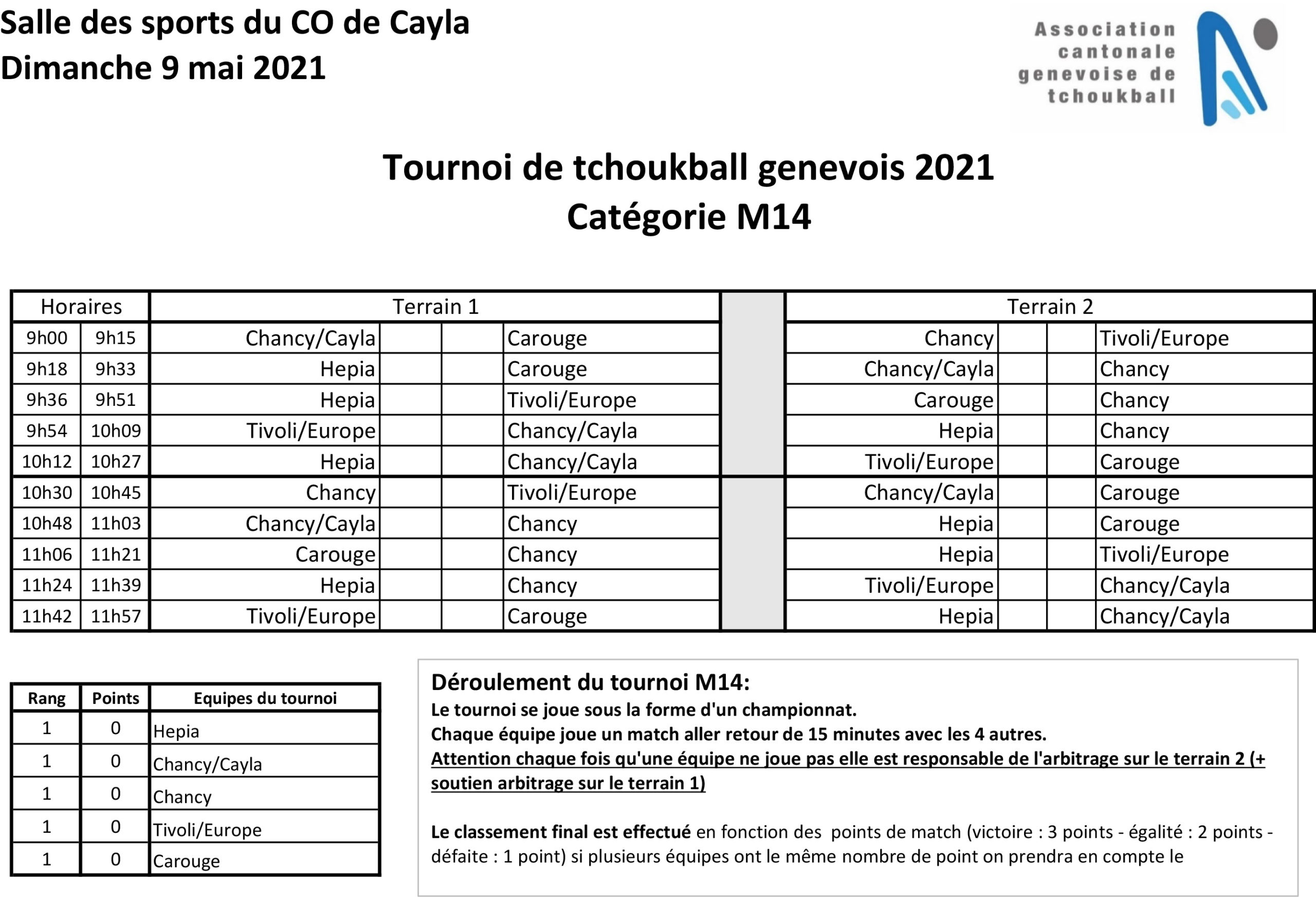 9h à 10h45: matchs du tournoi M14