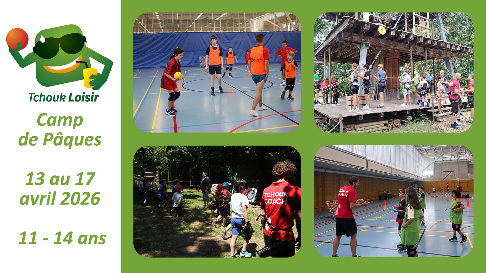 Tchoukloisir est heureux de vous proposer son camp de pâques. Le camp se tiendra du 13 au 17 avril 2026. Ce camp de jour proposera du tchoukball en salle chaque […]