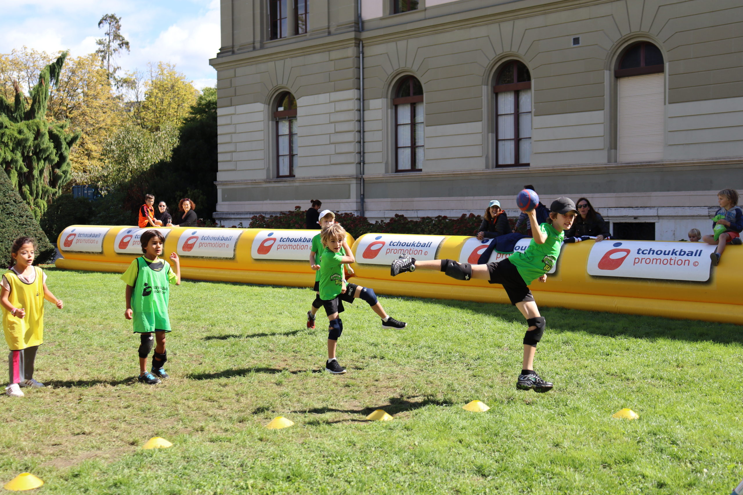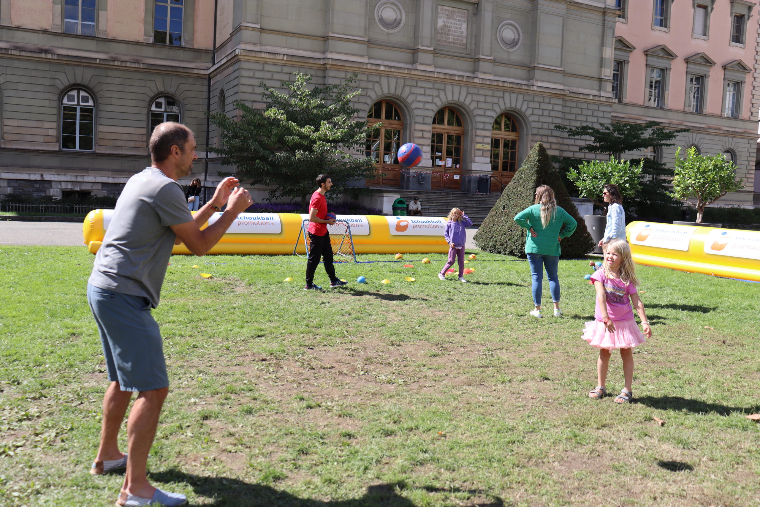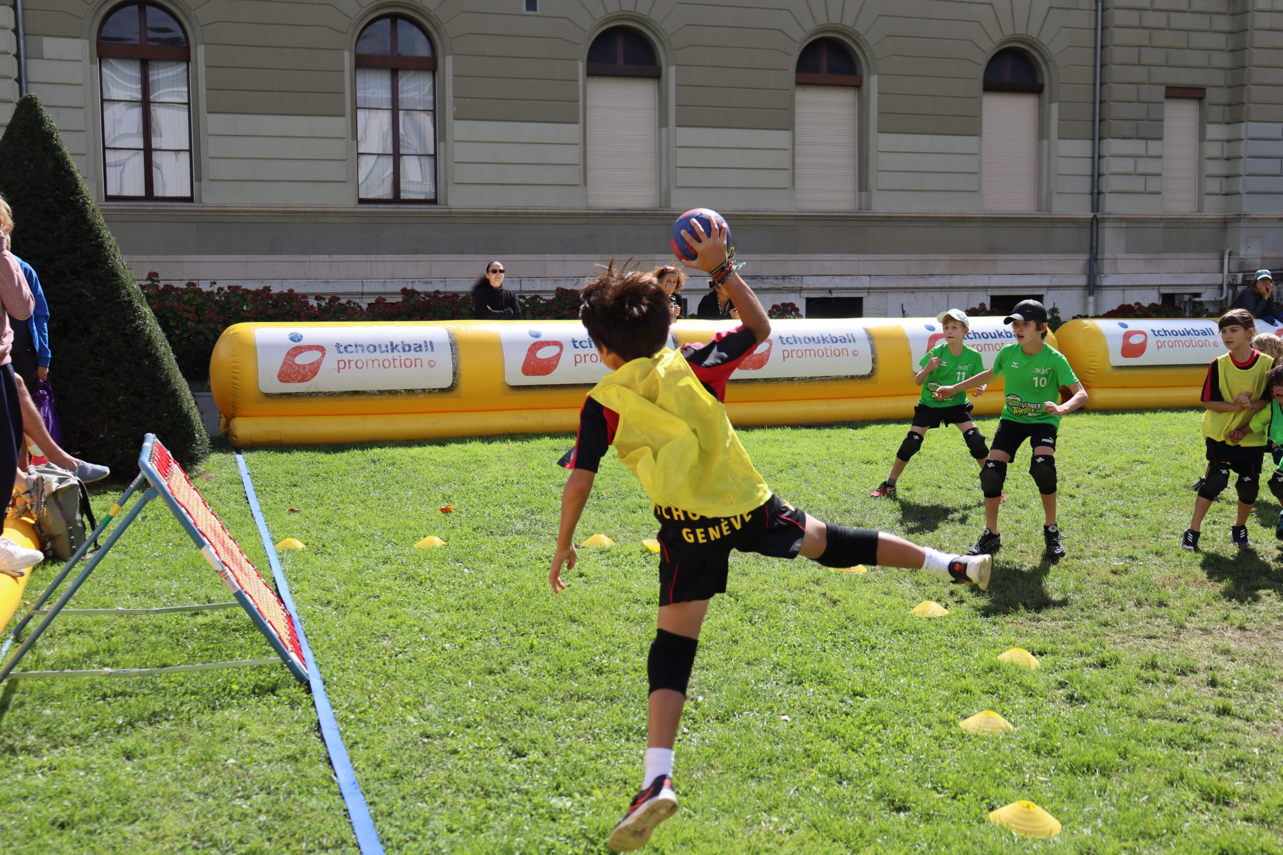 Avec deux tournois M10 samedi et deux tournois M12 dimanche, le stand du tchoukball a su attirer l’attention des passants pour assister aux matchs ou s’essayer au tchoukball sur le terrain d’initiation.