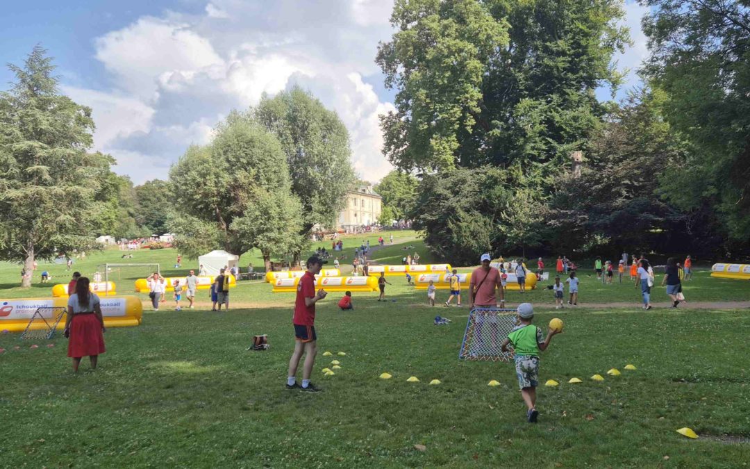Les moniteurs de tchoukball présents ont dès la fin de matinée installé 5 terrains pour faire des initiations et permettre au public de jouer. Si l’activité était prévue de 15h à 19, les premiers curieux ont commencé à jouer dès 13h30. Rapidement les différents terrains se sont remplis et les matchs amicaux, entre petits et grands, entre familles, amis, entre Genevois et vacanciers étranger en visite à Genève se sont enchaînés.